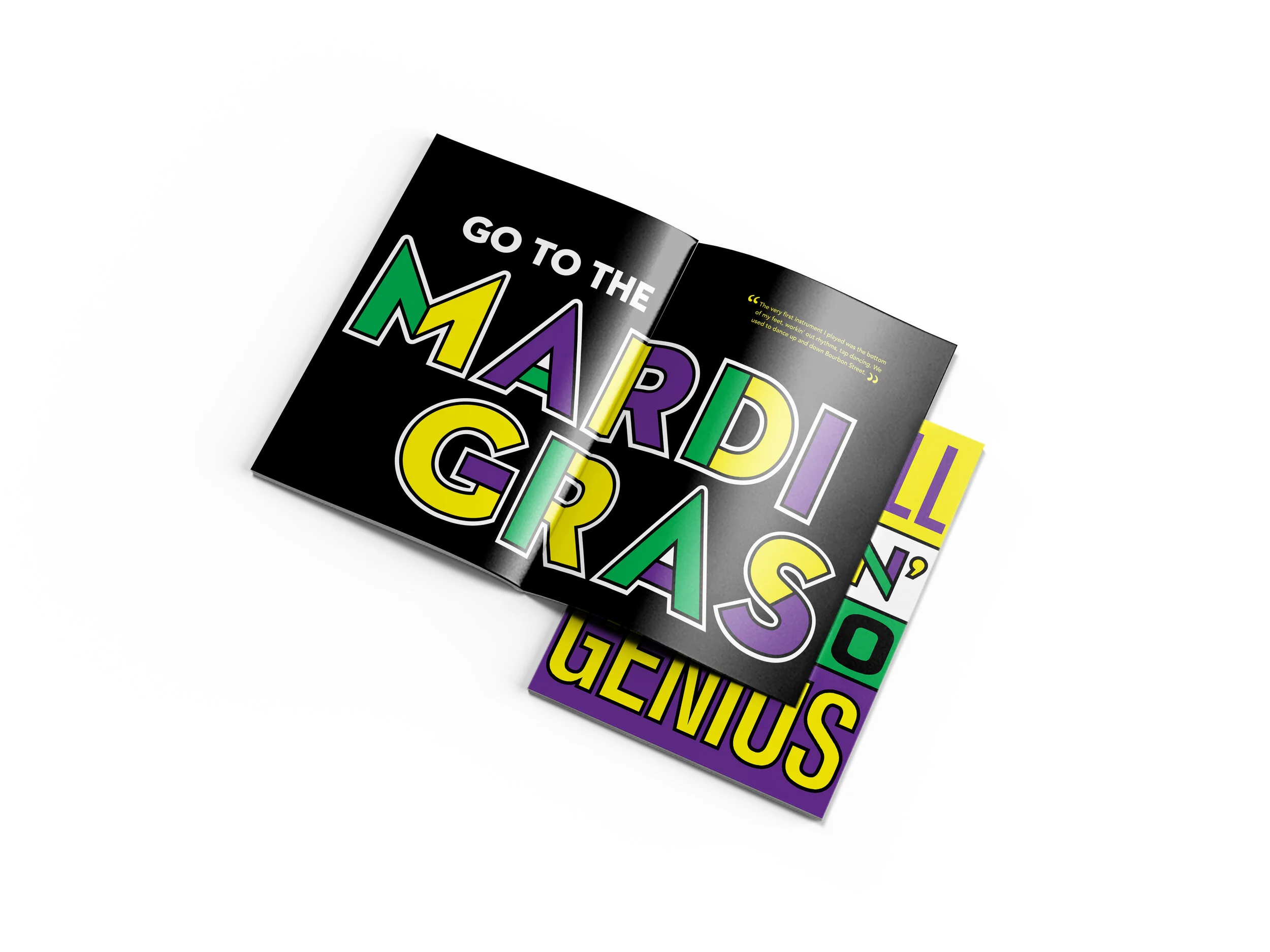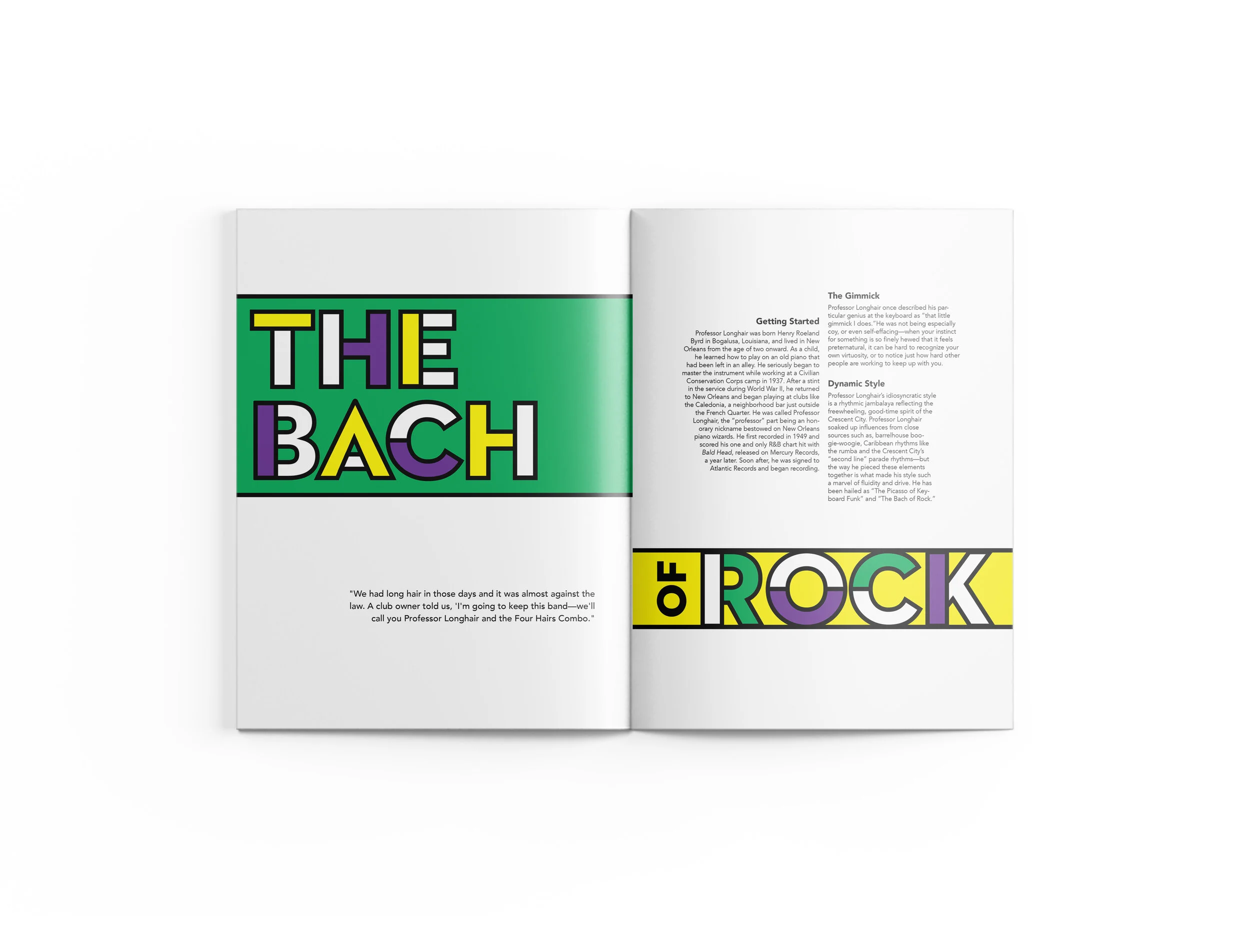 Henry Roeland “Roy” Byrd, better known as Professor Longhair or “Fess” for short, was an African American singer and pianist who performed New Orleans blues. Professor Longhair is known for his big bold sound and personality. To represent him I used typography in a bold and expressive way along with a the traditional Mardi Gras color scheme.